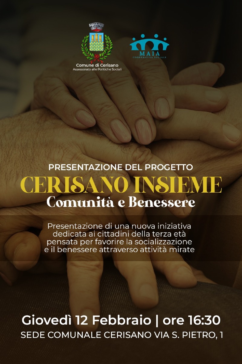 Cerisano - Prende ufficialmente il via il 12 febbraio a Cerisano il progetto “Cerisano Insieme – Comunità e Benessere”, un’iniziativa promossa dal Comune di Cerisano e pensata per favorire il benessere, la socialità e l’invecchiamento attivo della popolazione over 65.