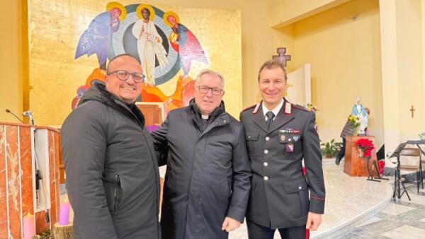 Il Sindaco di Caccuri e il Comandante dei Carabinieri accolgono il Vescovo Torriani