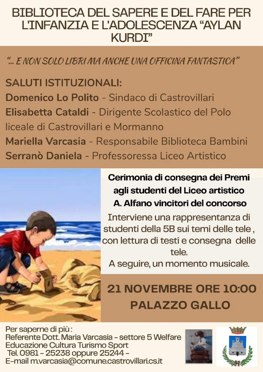 Nella giornata di oggi alle ore 10:00, il Comune di Castrovillari ospiterà una cerimonia speciale presso la Biblioteca per l'Infanzia e l'Adolescenza "Aylan Kurdi