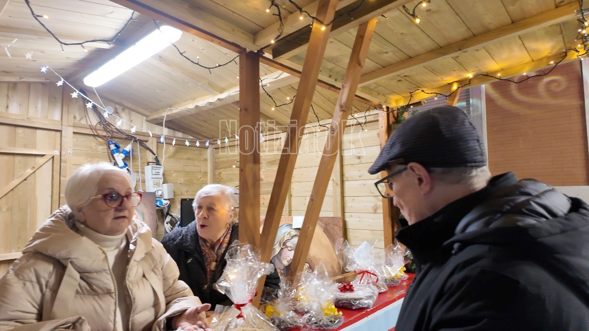 Contestualmente, in Piazza della Resistenza, tra i mercatini di Natale, i volontari e le volontarie della Mensa hanno organizzato un mercatino della solidarietà, proponendo marmellate fatte in casa, dolci e altre prelibatezze. In questi giorni sono inoltre in vendita quattro dipinti realizzati dagli studenti del Liceo Artistico Arnaldo Mori di Crotone – Veronica Vito e Alexandra Faccioli – raffiguranti la Madonna di Capocolonna e Padre Pio, il cui ricavato sarà interamente destinato a sostenere le attività della Mensa.
