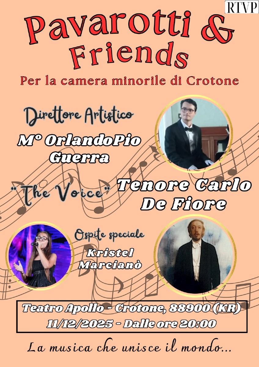 Crotone - La musica incontra la solidarietà con “Natale sotto l’Albero”, l’evento speciale che si terrà a Crotone e che unisce spettacolo, impegno sociale e progettualità concreta a supporto di bambini e famiglie in situazione di fragilità. La serata rappresenta un appuntamento di grande valore per il territorio anche in termini divisibilità e sensibilizzazione, con l’obiettivo di trasformare l’intrattenimento in un gesto concreto di vicinanza e supporto.