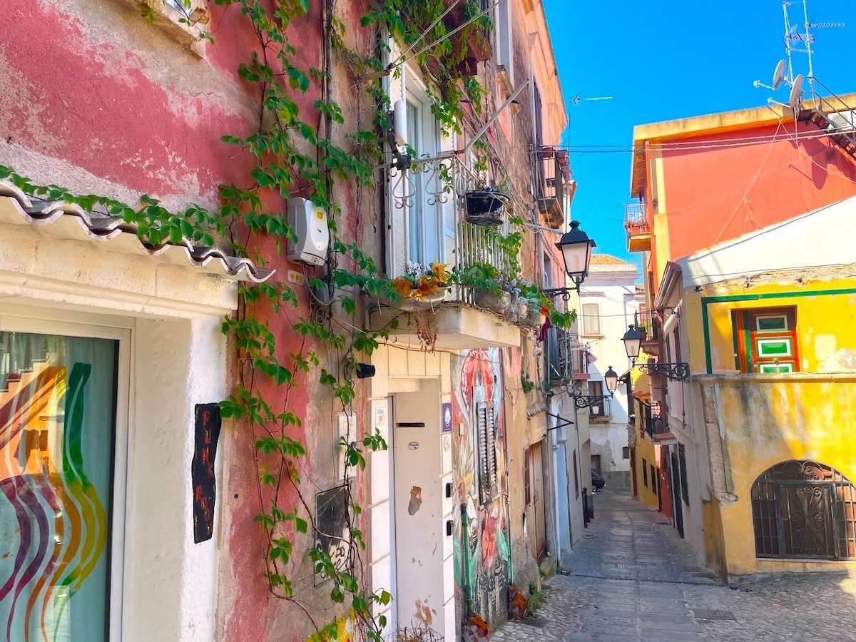Oggi, di quella antica parrocchia resta la memoria e il fascino del luogo. L’ex chiesa di Santo Stefano si affaccia sulla piazza, accanto a vicoli stretti e case dai colori vivaci. Sulla discesa Soda spicca una facciata decorata da un murale con una grande farfalla rossa e fiori stilizzati: un segno di arte urbana che illumina gli antichi muri del borgo. Tra piante rampicanti e balconi fioriti, a pochi passi si trova anche il Museo Archeologico Nazionale di via Risorgimento, custode di altre testimonianze della storia crotonese.