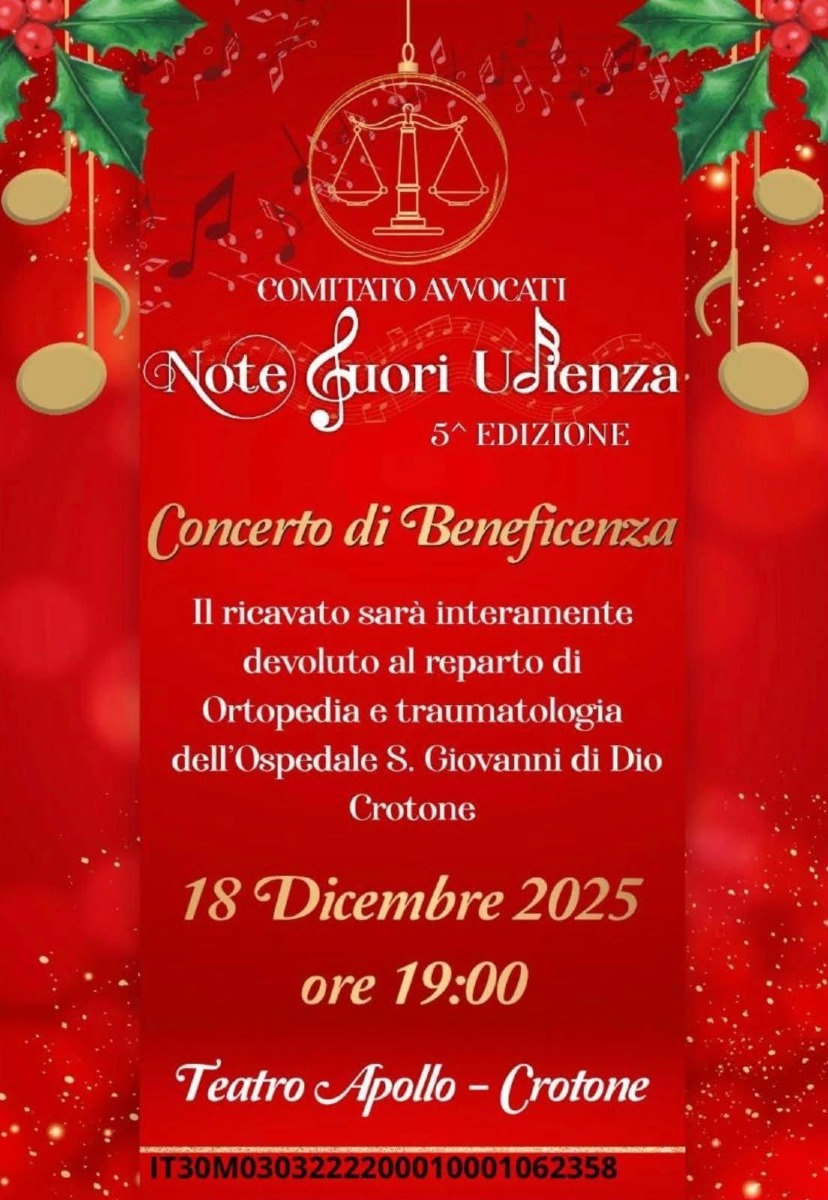 Il ricavato della serata sarà interamente devoluto al reparto di Ortopedia e traumatologia dell'Ospedale S. Giovanni di Dio di Crotone