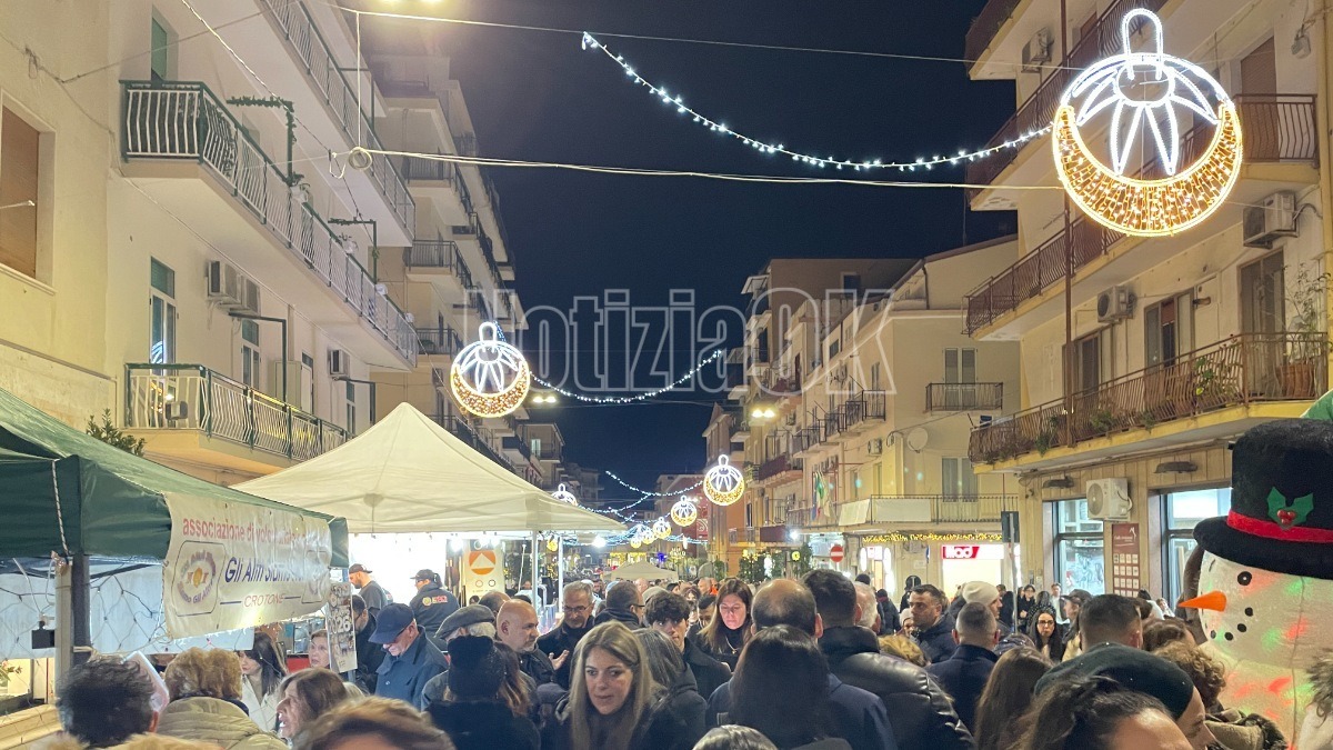 Una serata di festa e magia ha animato questa sera Via Roma a Crotone, grazie all’iniziativa organizzata dall’Associazione Commercianti di Via Roma, guidata da Giuseppe Masellis. Dalla musica ai mercatini di Natale, dal cibo tradizionale alle performance di artisti di strada, la manifestazione ha riportato il centro città al centro dell’attenzione, richiamando numerose famiglie e cittadini.