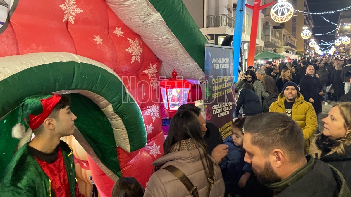 Una serata di festa e magia ha animato questa sera Via Roma a Crotone, grazie all’iniziativa organizzata dall’Associazione Commercianti di Via Roma, guidata da Giuseppe Masellis. Dalla musica ai mercatini di Natale, dal cibo tradizionale alle performance di artisti di strada, la manifestazione ha riportato il centro città al centro dell’attenzione, richiamando numerose famiglie e cittadini.