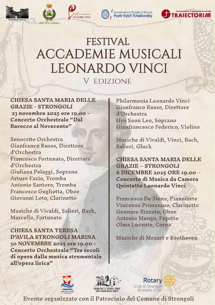 Dopo il successo dello scorso weekend prosegue il Festival Accademie Musicali Leonardo Vinci. Il prossimo appuntamento è il 30 novembre alle ore 19.00 per la seconda serata del Festival 2025, nella Chiesa di Santa Teresa d'Avila a Strongoli Marina.