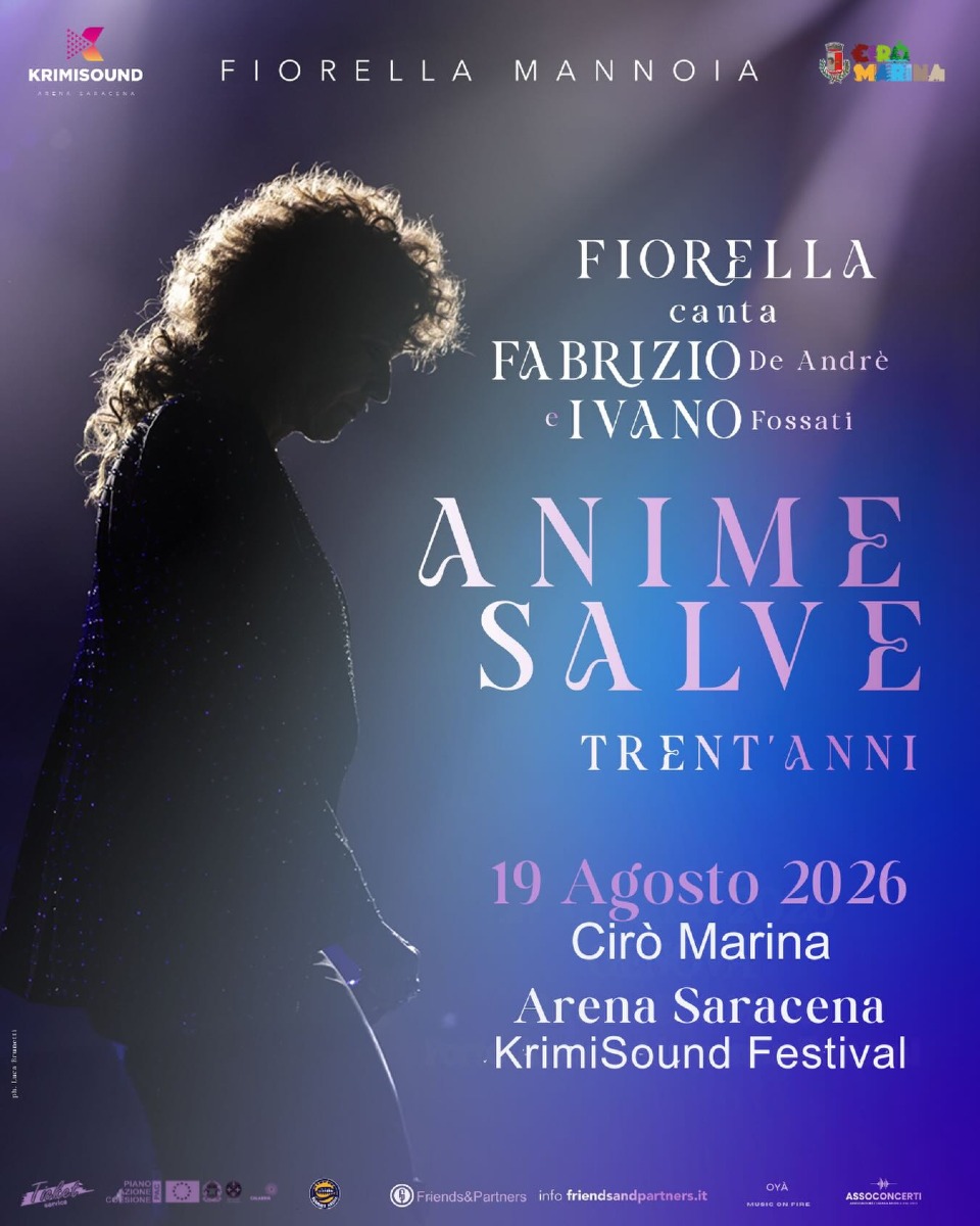 Cirò Marina - Fiorella Mannoia celebra due icone della musica italiana, Fabrizio De André e Ivano Fossati, con uno spettacolo inedito dal titolo Fiorella canta Fabrizio e Ivano: Anime Salve.