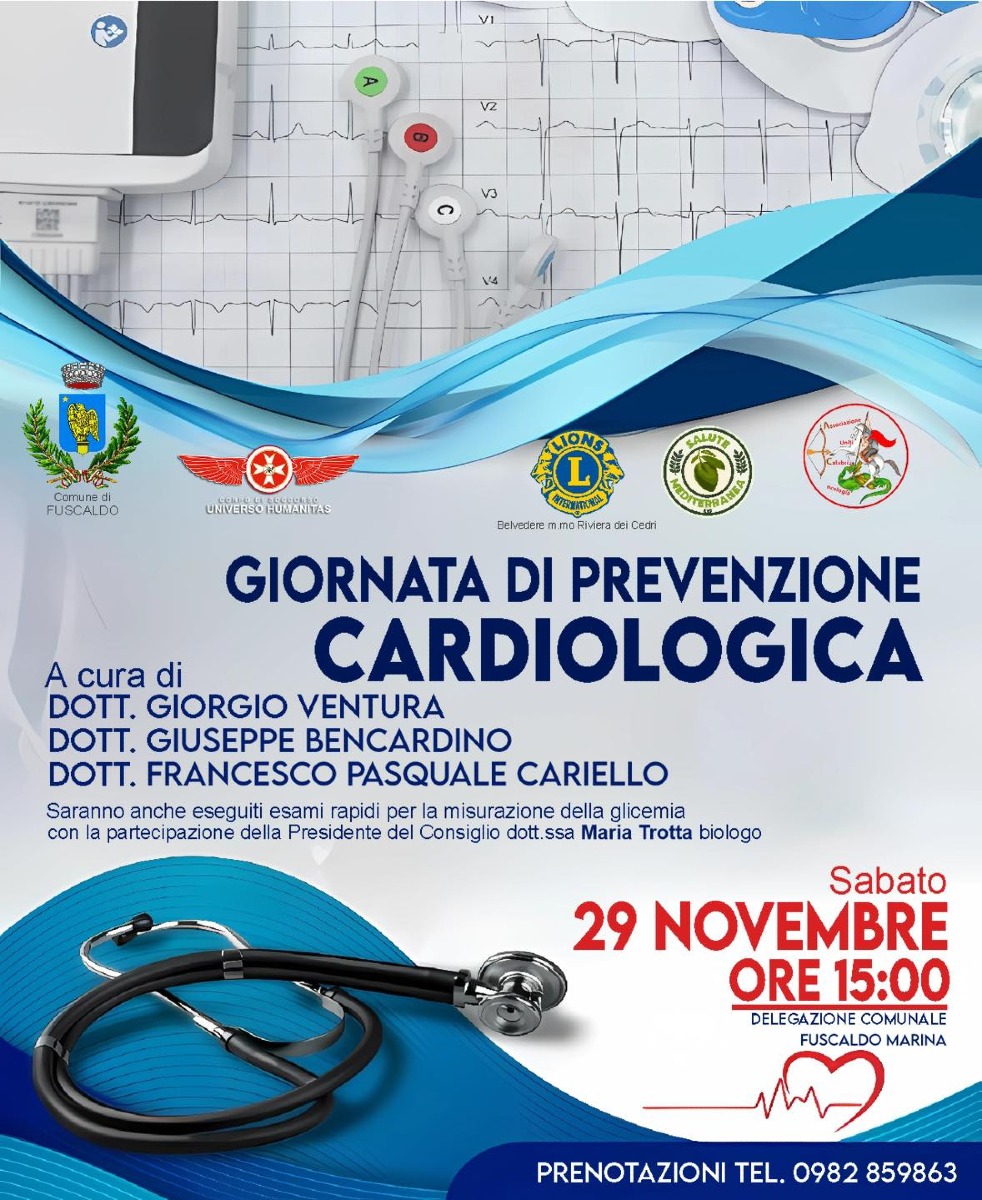 Fuscaldo - Il Comune di Fuscaldo promuove una giornata dedicata alla prevenzione cardiologica con screening gratuiti curati dai medici Giorgio Ventura, Giuseppe Bencardino e Francesco Pasquale Cariello.