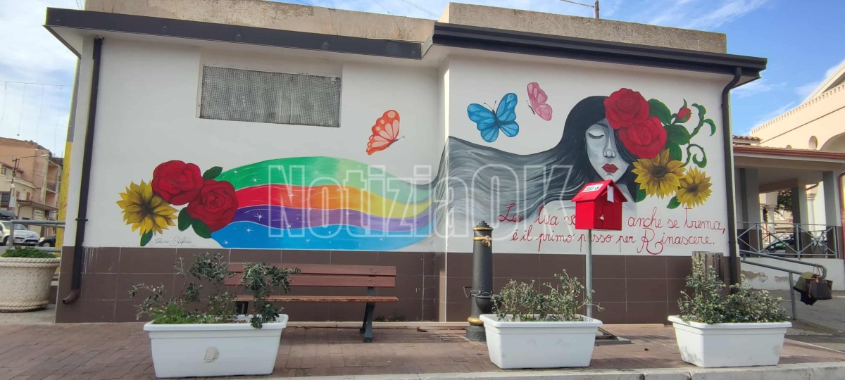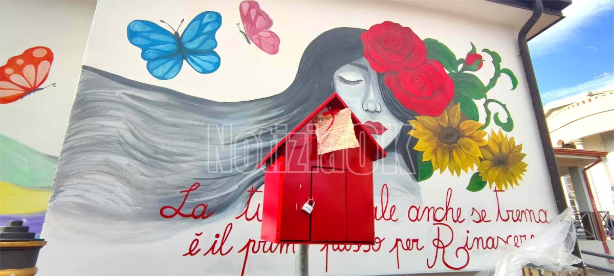 L'opera, creata dall'artista Stefania Iuliano, campeggia sul muro con una scritta: "La tua voce vale anche se trema, questo è il primo passo per rinascere".