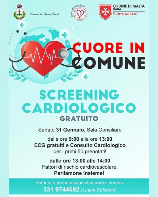 Durante la mattinata, i primi 50 cittadini che si prenoteranno potranno usufruire di ECG gratuiti e di un consulto cardiologico con specialisti del settore. Inoltre, dalle 13:00 alle 14:00, si terrà un momento di confronto e approfondimento sui fattori di rischio cardiovascolare, aperto a tutta la cittadinanza, per sensibilizzare sulla prevenzione e sulla cura delle malattie del cuore.