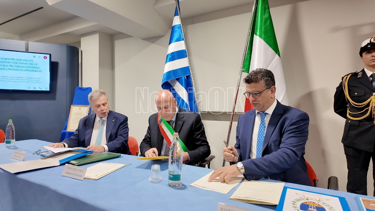 Nel corso della cerimonia sono intervenuti il sindaco di Andravida–Kyllini Ioannis Lentzas e il sindaco di Crotone Enzo Voce, che hanno sottolineato il valore strategico del gemellaggio. Lentzas ha richiamato le radici comuni e le potenzialità legate alla valorizzazione turistica e culturale, indicando nella cooperazione internazionale una leva per crescita sostenibile, innovazione e tutela ambientale.